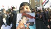protesters wearing masks of martyr faces